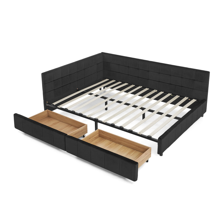 - 【Mid-Century Queen Daybed】This Queen size daybed is designed with a clean silhouette and a hue of elegance.it upholstered in carefully-selected velvet fabric which can perfectly blend in with any color scheme and existing furniture in your bedroom or living room.