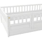 Twin Size Floor bed, integral construction with super high security barrier, door, children's floor bed frame, Montessori wooden children's floor bed, white