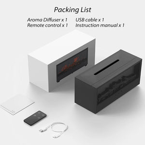 Function: Aroma oil atomization, no water intelligent shutdown, colorful ambient lighting & realistic fireplace night light,Self-contained remote control
