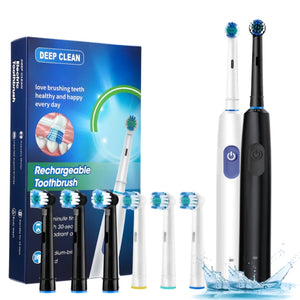 1. This rotating rechargeable electric toothbrush with 25° left and right rotation has four brush heads for thorough cleaning.