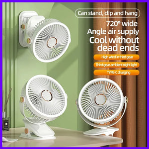 Portable 3 Speed Electric Fan Outdoor Indoor Rechargeable Desktop Air Circulator Wall Mounted Fan With LED Light Office Home Fan