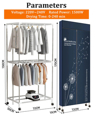 Portable Electric Clothes Dryer,220V-1500W Heated Clothes Airer, Heated Clothes Dryer with Timer, Electric Clothes Dryer